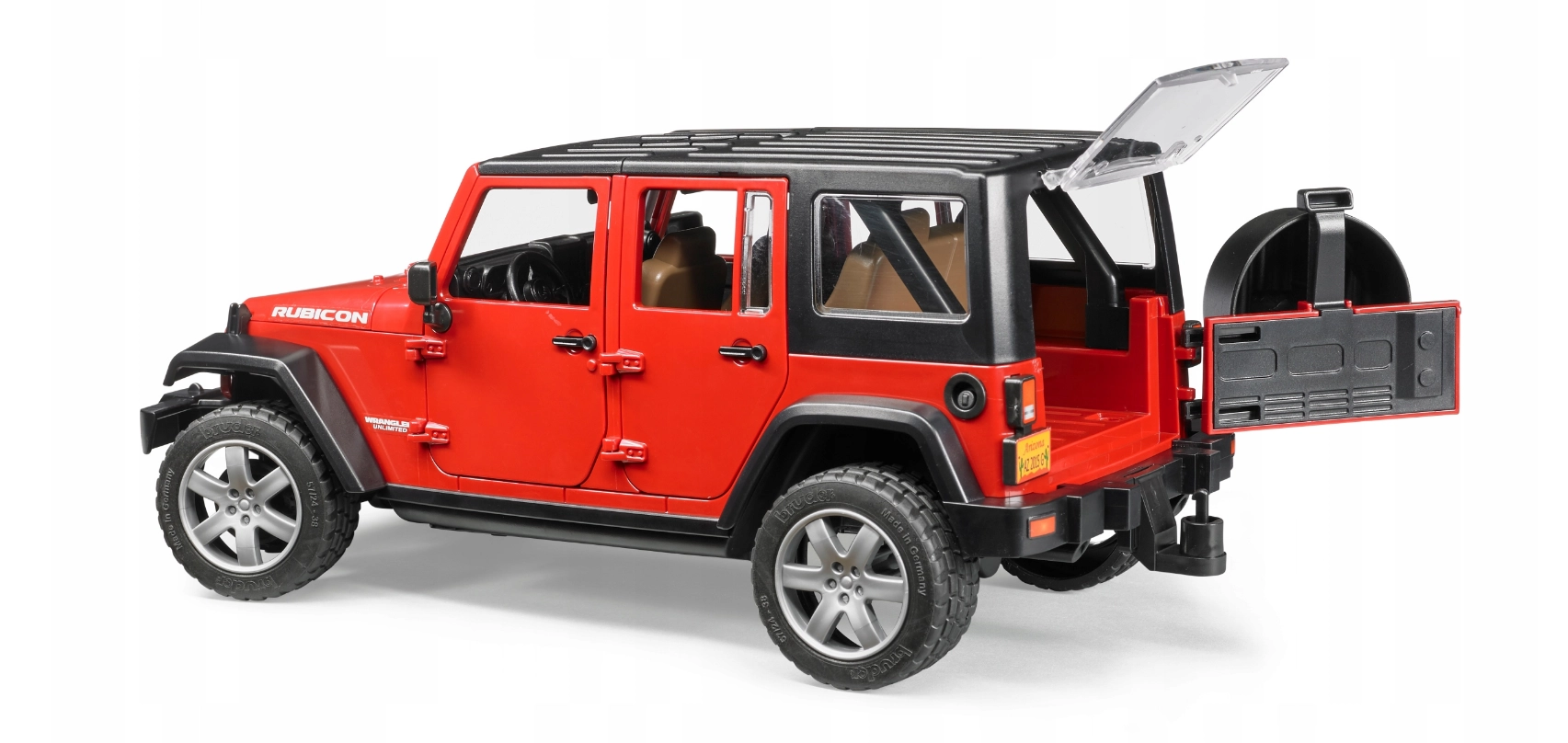 Przedstawiamy auto terenowe, które spodoba się wszystkim chłopcom. Cechą charakterystyczną zabawek Bruder jest to, że odzwierciedlają w najdrobniejszych szczegółach oryginalne pojazdy, maszyny rolnicze i budowlane. Wykonywane są przez niemieckiego producenta, który dba nie tylko o wysoką jakość i atrakcyjny wygląd modeli, ale także bezpieczeństwo dzieci podczas zabawy. Jeep Wrangler Unlimited Rubicon posiada: • zdejmowany, dwuczęściowy dach, • otwierane wszystkie drzwi oraz otwieraną maskę silnika, • skrętną oś przednią sterowaną za pomocą kierownicy wkładanej przez dach, • wyjmowaną kanapę, • odpinany hak holowniczy, • okna z nietłukącego tworzywa sztucznego, • terenowe zawieszenie i gumowe opony z profilowanym bieżnikiem, • miejsce dla 4 pasażerów – figurek Bruder z serii bWorld, • możliwość podpięcia przyczep (np. do przewozu zwierząt). Wymiary: 32.9 x 14.4 x 14.2 cm