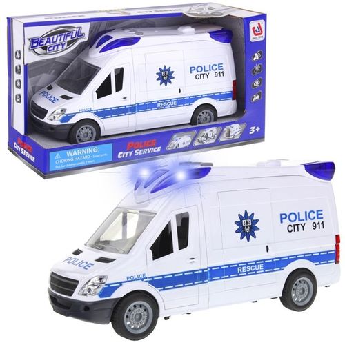 Pojazd policyjny z napędem frykcyjnym przeznaczony do akcji pościgowych, zapewni chłopcom dużą frajdę. Wóz posiada otwierane drzwi do kabiny, otwierane drzwi boczne oraz otwierany bagażnik, co ułatwia transport podejrzanych. Na dachu znajduję się moduł dźwiękowo-świetlny, który uatrakcyjni każdą zabawę. Wystarczy włączyć syrenę i wyruszyć do akcji.