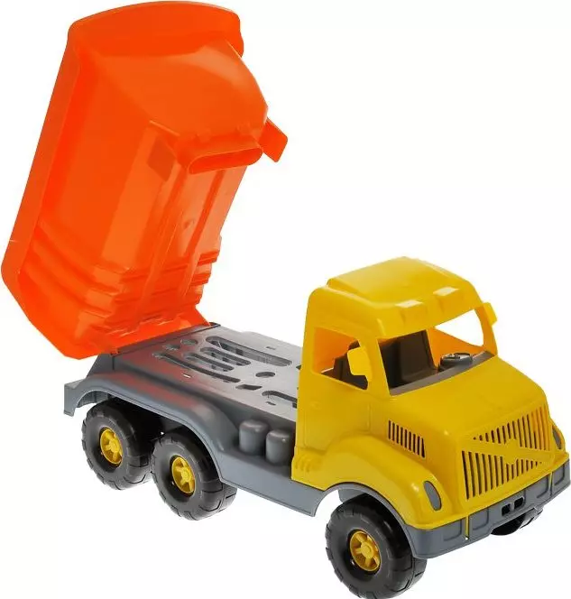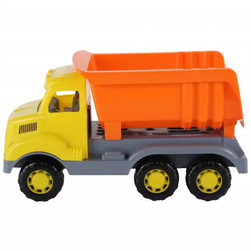 Wywrotka z ruchomą naczepą jest wyposażona w szerokie koła. Żywe kolory zachęcają do zabawy, zarówno w domu jak i na podwórku. Auto charakteryzuje duża, lekka, bardzo wytrzymała konstrukcja. Zabawka wykonana jest z materiałów najwyższej jakości, co gwarantuje wiele godzin wspaniałej zabawy. Wymiary: 58,5 x 25,5 x 32,8 cm