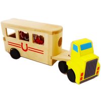 Doskonała zabawka składająca się z dużego samochodu ciężarowego z przyczepą do przewozu koni, w której znajdują się 2 koniki. Wszystko wykonane z drewna. Zabawka pomaga w rozwoju motoryki dużej, jak i rozwija wyobraźnię oraz wiedzę o otaczającym nas świecie.