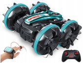 Dzięki wyjątkowej wodoodpornej konstrukcji ten pojazd bez problemu radzi sobie zarówno na lądzie jak i w wodzie. Spektakularne obroty 360° wokół własnej osi, przewrotki o 180° i zdolność wspinania się pod kątem 45° sprawiają, że każda zabawa staje się niezapomnianą przygodą. System przeciwzakłóceniowy umożliwia jednoczesną zabawę kilkoma pojazdami.