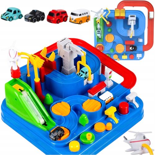 Tor posiada różnorodne ruchome elementy, takie jak dźwig, zwodzony most, podjazd pod górę, czy zmiana kierunku trasy. Te elementy można kontrolować za pomocą przycisków, co sprawia, że dziecko ma pełną kontrolę nad przebiegiem zabawy.