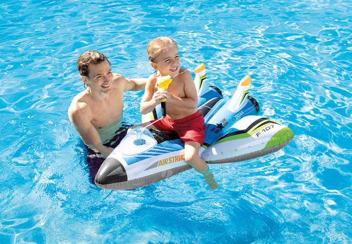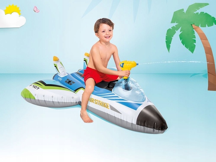 Dmuchany samolot z prawdziwym działkiem wodnym to marzenie wszystkich dzieciaków! To zabawka, która pozwoli stoczyć prawdziwe bitwy wodne na zwykłym basenie i na zapewni im prawdziwe emocje.