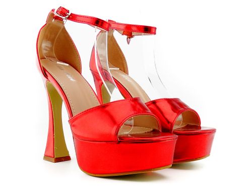 Podkreśl swój niepowtarzalny styl z naszymi sandałami na platformie w intensywnym czerwonym kolorze! Te wyjątkowe buty wykonane z eko skóry lakierowanej to idealne połączenie elegancji i komfortu, które zauroczy każdą miłośniczkę mody. Dzięki doskonałemu wykonaniu w pełni spełniają wymogi zarówno modowych trendów, jak i jakości. Sandały mają platformę o wysokości 4 cm oraz obcas w kształcie słupka, który mierzy 14 cm, co doda Twojej sylwetce lekkości i wdzięku.