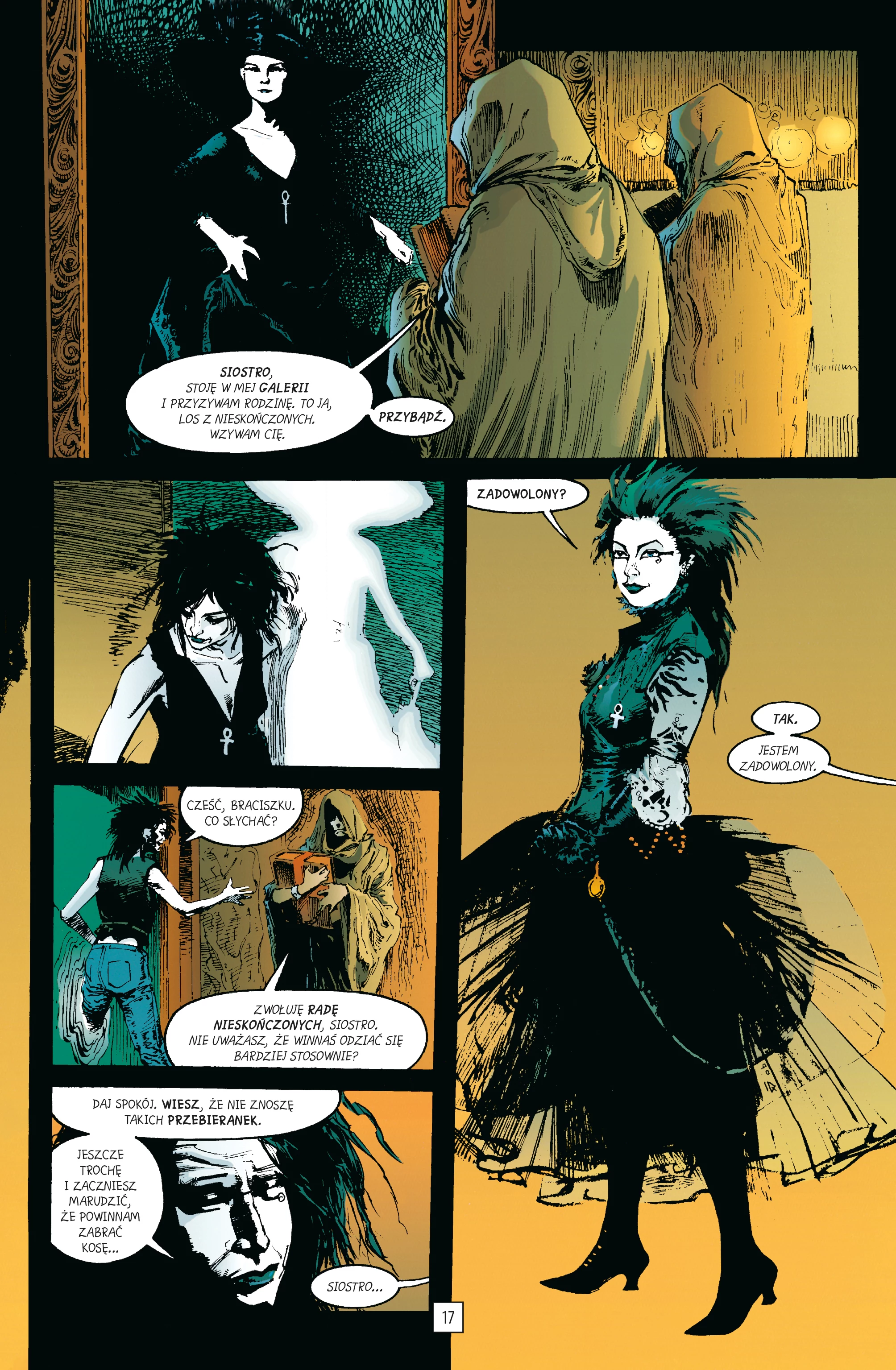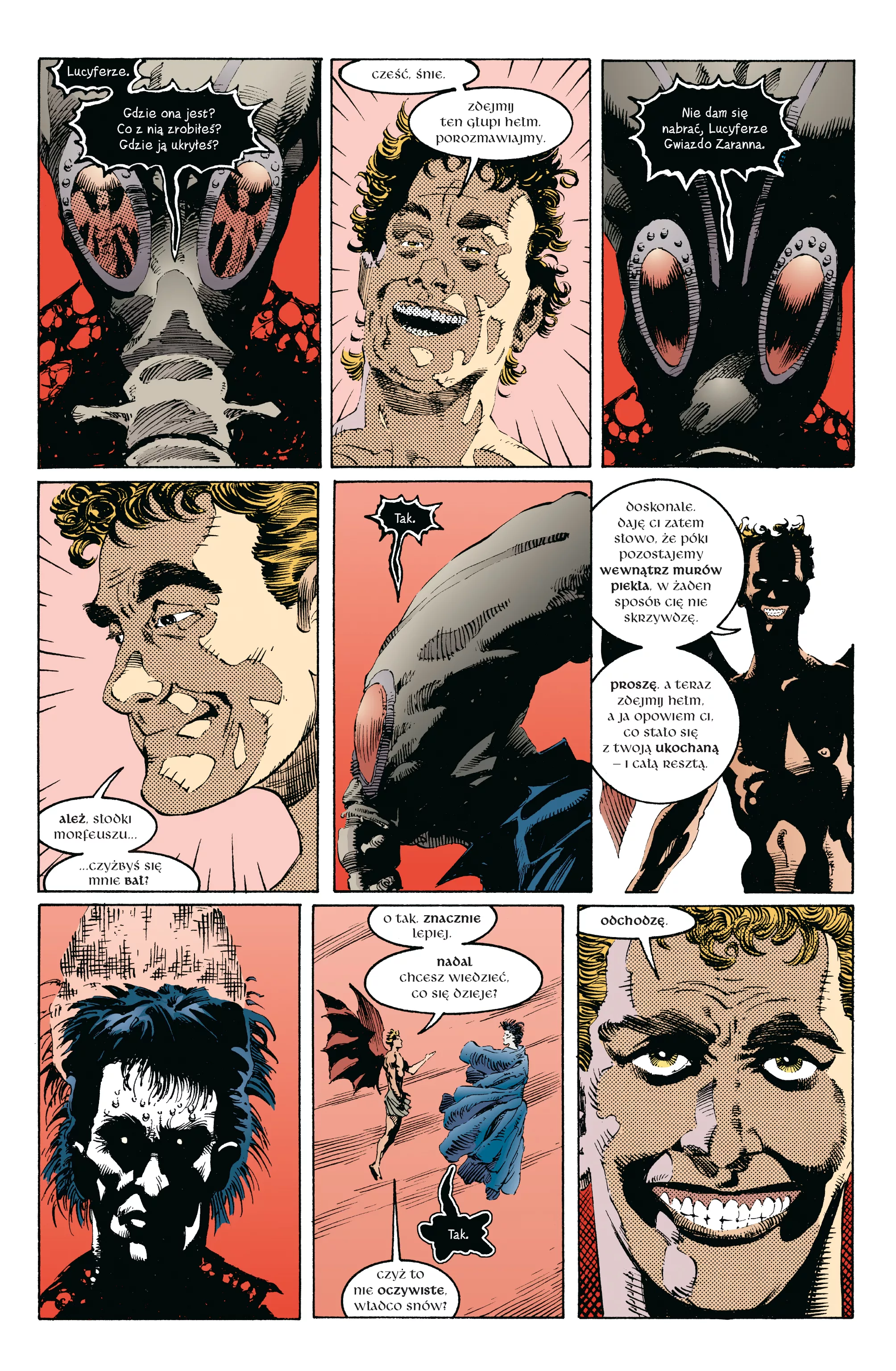 Cykl „Sandman” to mroczna, ciążąca ku horrorowi historia ludzkich kontaktów z Sandmanem, Władcą Snów – istotą, która wprawdzie nie jest bogiem, ale ma władzę, o jakiej wielu bogów może tylko marzyć – rządzi ludzkimi snami... A jest to potężna władza, gdyż sny często kierują naszym życiem... a czasami je zastępują. Liczne nawiązania kulturowe i religioznawcze zawarte w komiksie spowodowały, że SANDMAN został uznany przez krytykę za dzieło wybitne. Zebrał wiele nagród komiksowych, m.in. Nagrodę Eisnera, Nagrodę Harveya oraz World Fantasy Award, nagrodę zarezerwowaną dla literatury, którą po raz pierwszy w historii otrzymał komiks. Autorem scenariusza jest wielokrotnie nagradzany pisarz, scenarzysta komiksowy i filmowy Neil Gaiman, laureat m.in. Nagrody Eisnera, Harveya i Hugo. Za ilustracje do tego tomu odpowiadają rysownicy należący do najwybitniejszych współczesnych artystów komiksowych, m.in. Kelley Jones („Deadman”, „Batman”, „Moon Knight”), Malcolm Jones III („Dracula, „Spider-Man”) i Mike Dringenberg („Doom Patrol”).