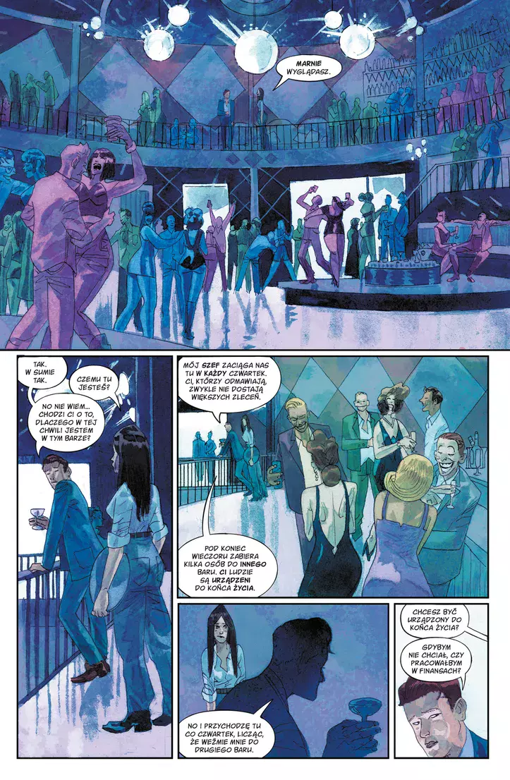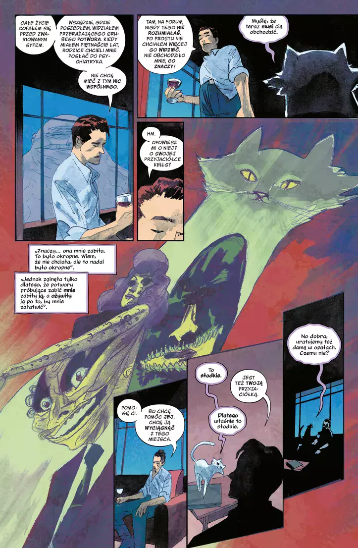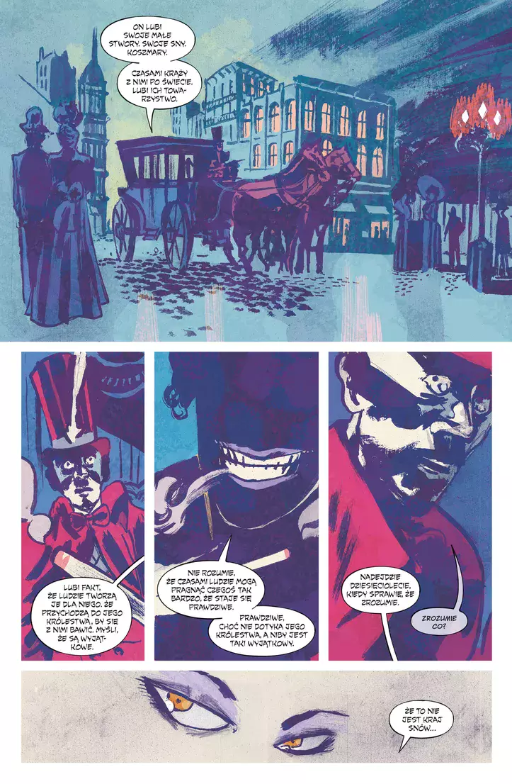 Drugi tom przerażającej opowieści grozy osadzonej w obrębie wymyślonego przez słynnego Neila Gaimana świata Sandmana. Koszmar zwany Koryntczykiem znowu krąży po świecie jawy. Zawzięty pościg za Uśmiechniętym Człowiekiem poprowadzi go krwawą ścieżką do nowoczesnej siedziby firmy Prophet Capital i do demonicznego klubu. Nikt nie będzie przed nim bezpieczny. Ani Ken, żyjący pełnią życia w Kalifornii wiele lat po rozstaniu z Barbie. Ani Max, nerwowy zarządca funduszu hedgingowego. Ani Tesalia, nieśmiertelna czarownica, która wyjaśnia tajemnicę śmierci Madison Flynn. Serię „Kraina koszmarów” pisze autor wielu bestsellerów James Tynion IV („Batman”, „Coś zabija dzieciaki”, „Departament Prawdy”), a rysują ją różni graficy, przede wszystkim bardzo utalentowany Lisandro Estherren („Redneck”, „Strange Skies Over East Berlin”). Album zawiera materiały pierwotnie opublikowane w zeszytach serii „The Sandman Universe: Nightmare Country – The Glass House” #1-6 i „The Sandman Universe Special: Thessaly” #1. Komiks dla dorosłych. Tytuł oryginalny: The Sandman Universe: Nightmare Country – The Glass House Scenarzysta: James Tynion IV Ilustrator: Lisandro Estherren, Patricio Delpeche, Maria Llovet Tłumacz: Paulina Braiter
