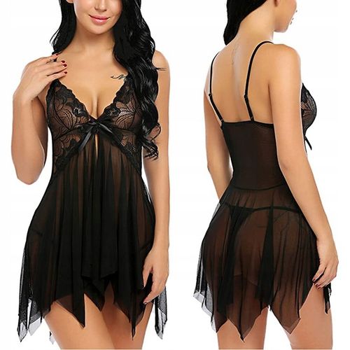 Ta wysokiej jakości koszulka nocna ze stringami łączy w sobie elegancję i wdzięk. Wykonana z delikatnej, transparentnej tkaniny i urozmaicona wykwintną koronką, wspaniale podkreśli Twoją kobiecość i sprawi, że poczujesz się wyjątkowo.