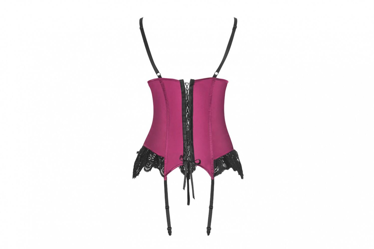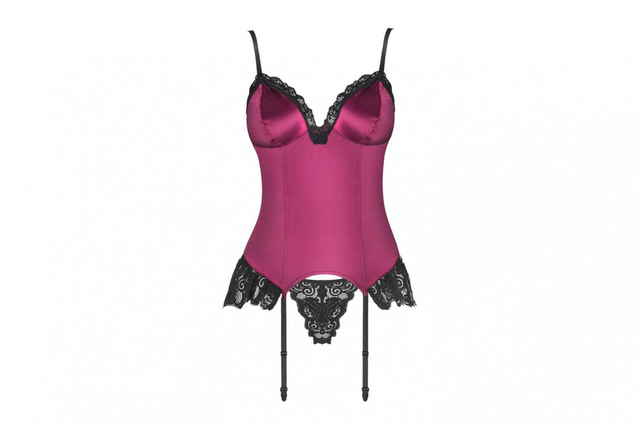 Bardzo wytworny gorset na cienkich, regulowanych ramiączkach, z miękkiej satyny w bordowym kolorze.