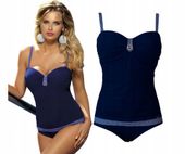 ❤️ Jednoczęściowy - wykończony jak koszulka z majtkami. Gładki, ozdobiony wzorkiem w groszki na ramiączkach i na pasku z przodu na linii bioder oraz z ozdobnym guziczkiem pomiędzy miseczkami