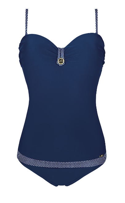 Niezwykle kobiecy strój kąpielowy jednoczęściowy o kroju retro. Posiada dobrze wyprofilowane miseczki z wkładką push-up, co sprawia, że biust jest idealnie podtrzymany i wyeksponowany. Ramiączka średniej szerokości, regulowane. Strój wykonany jest z najwyższej jakości lycry. Góra stroju zaprojektowana w taki sposób, że sylwetka jest wysmuklona, a linia biustu i talii podkreślona. Dół gładki. Idealnie sprawdzi się na basenie i plaży, gdyż materiał odznacza się wysoką odpornością na chlor i słońce. Self to polski producent strojów kąpielowych z wysokiej jakości materiałów. Efektowny design i śmiała, modna kolorystyka wyróżniają produkty tej marki spośród wielu modeli kostiumów kąpielowych.