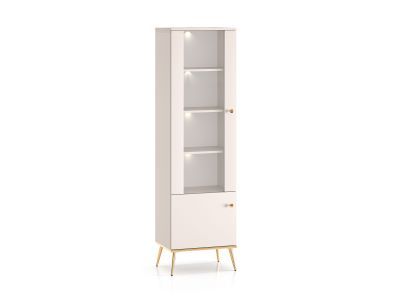 Witryna Selgin 01 to mebel, dzięki któremu wyeksponujesz swoje ulubione przedmioty. Trzy półki dzielą oszkloną przestrzeń na cztery wnęki. Ustawisz w nich kieliszki, kolekcję porcelany lub pamiątki z podróży. Dolną część mebla tworzy zamykana półka, na której przechowasz zastawę stołową lub obrusy. Bryła mebla posadowiona jest na stabilnych, wysokich nóżkach wykonanych z wytrzymałego metalu. Podwójnie galwanizowane uchwyty oraz nogi w złotym wybarwieniu gwarantują wieloletnie, wygodne użytkowanie. Meble z kolekcji Selgin łączą w sobie wysoką funkcjonalność z zachwycającym designem.