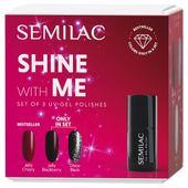 Semilac Shine With Me Set to propozycja dla osób, które lubią bawić się kolorem i tworzyć manicure dopasowany do nastroju, okazji i trendów sezonu. W zestawie znajdują się trzy lakiery hybrydowe – każdy o innym charakterze, dzięki czemu łatwo zbudować zarówno subtelny efekt, jak i mocniejszy, wieczorowy look.