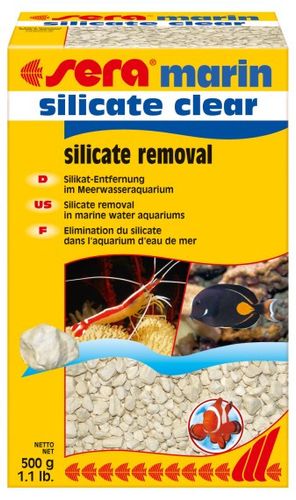 Krzemiany sprzyjają rozwojowi okrzemek w akwarium morskim. Sera marin silicate clear w prosty sposób i długotrwale wiąże krzemiany. Do sera marin silicate clear dołaczone są praktyczne woreczki na wkłady filtracyjne. Przed użyciem, krótko opłucz wkład pod bieżącą wodą, a następnie umieść w filtrze lub w miejscu z dobrą cyrkulacją wody. Działanie do trzech miesięcy, w zależności od stopnia zanieczyszczenia krzemianami.