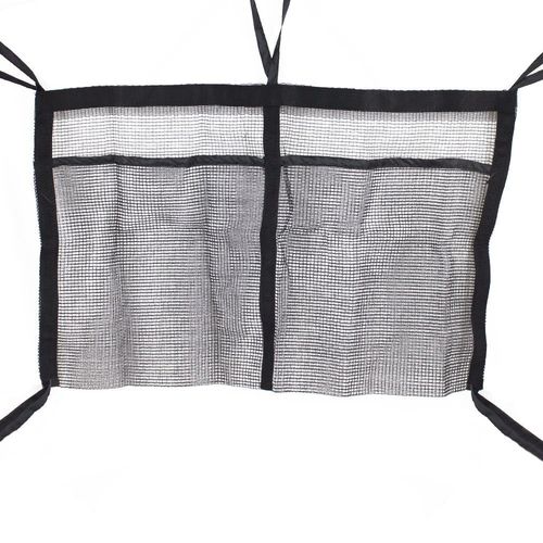 Worek wykonany jest z materiału siatkowego - nylon, ma dwie kieszenie i łatwo go zamocować na ramie trampoliny .