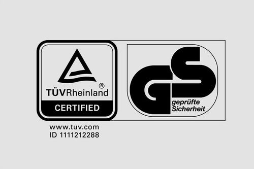 ✔️ Certyfikat TÜV GS gwarantujący najwyższe standardy jakości i bezpieczeństwa użytkowania.