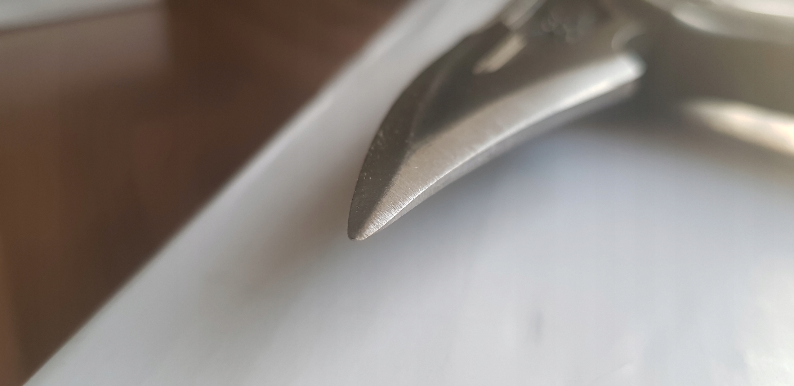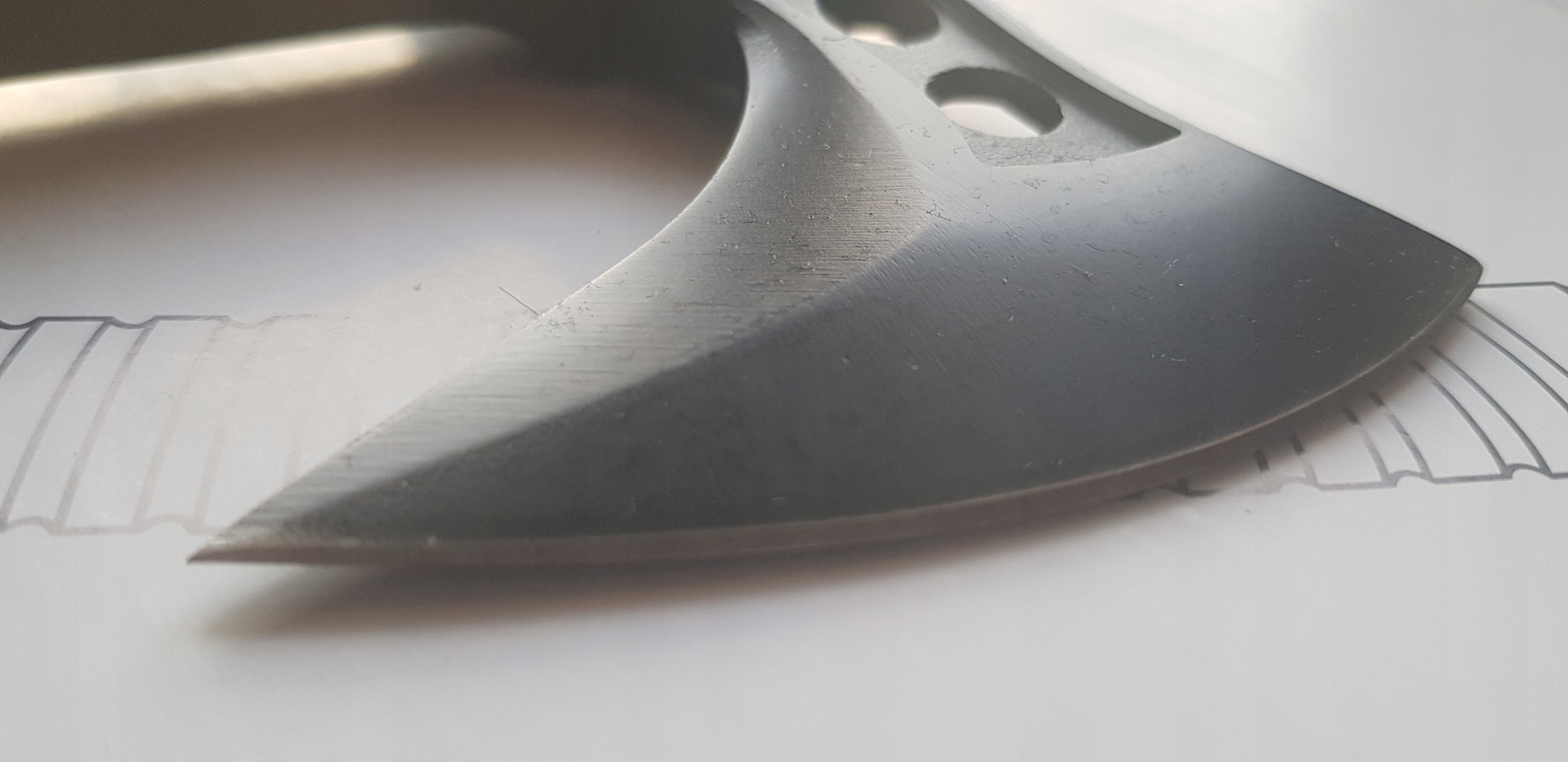 Rękojeść wykonana z mocnego tworzywa typu ABS, połączona z ostrzem za pomocą trzech śrub.