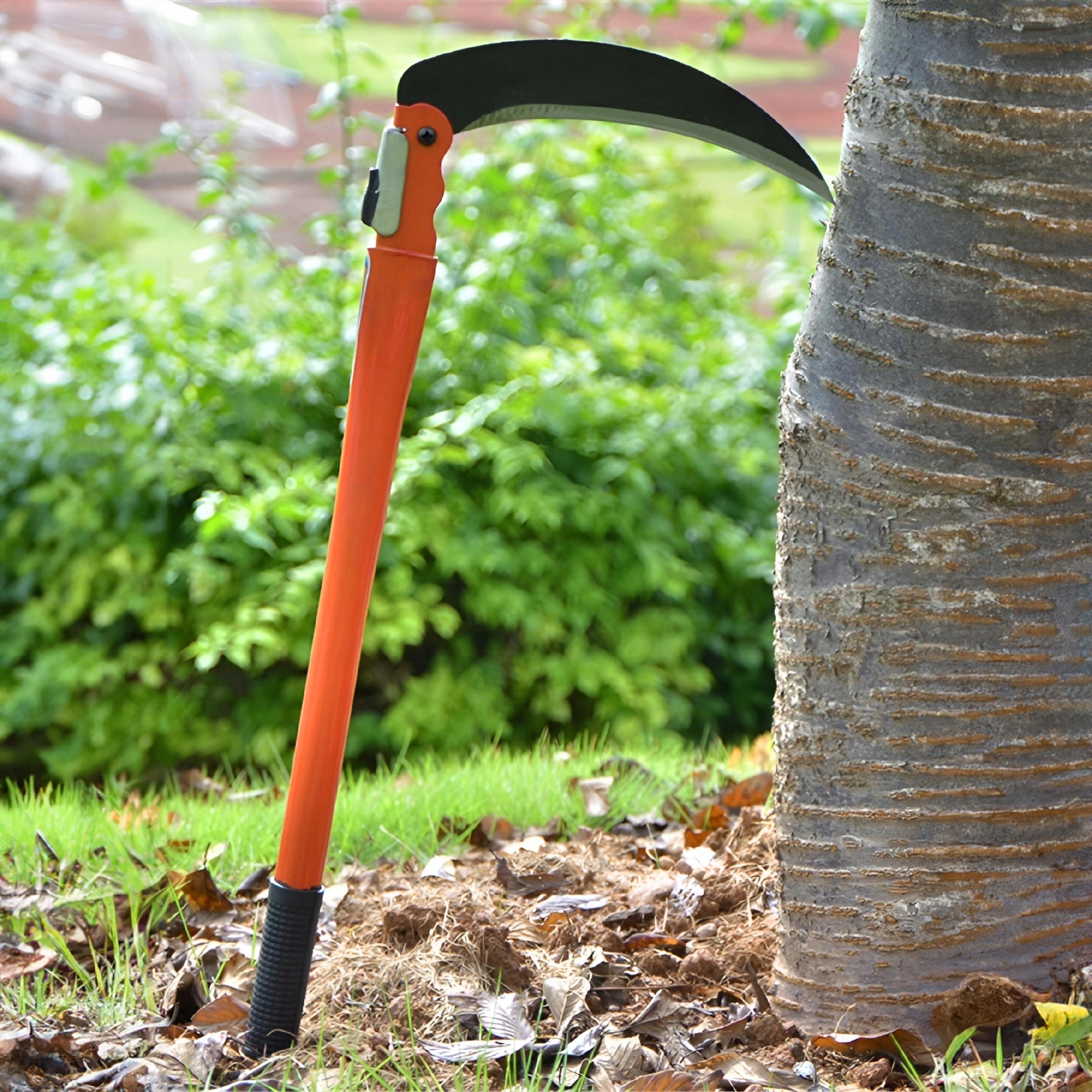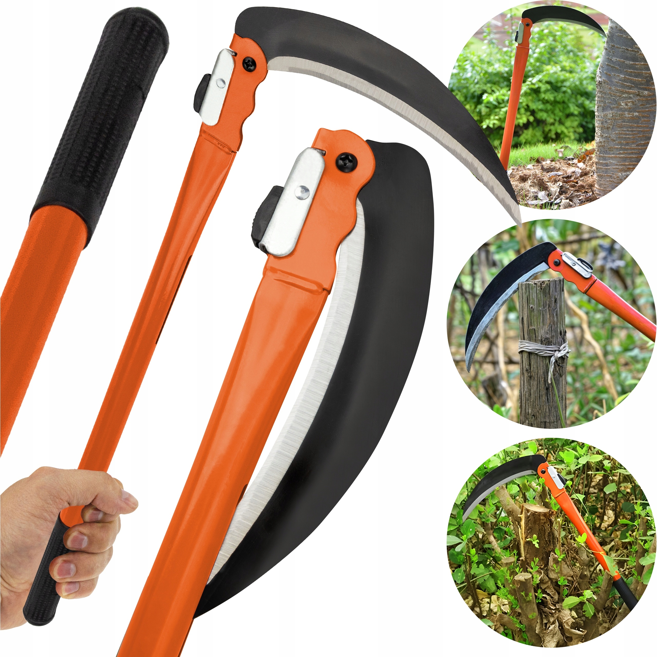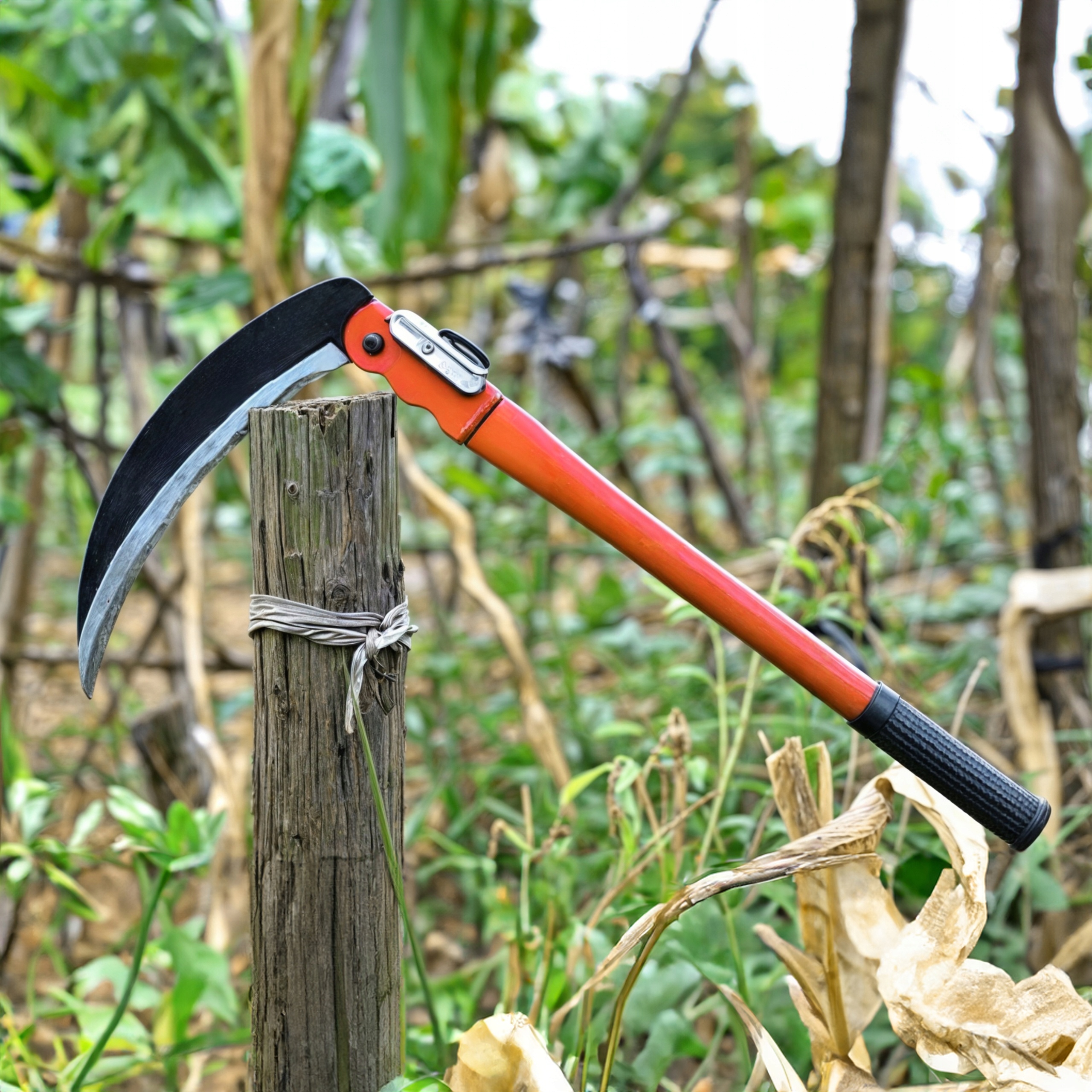Ostrze o długości 23 cm wykonane zostało z wysokiej jakości stali węglowej, co zapewnia trwałość, odporność na korozję i wysoką skuteczność cięcia. Rękojeść z żelaza gwarantuje stabilność i pewny chwyt w trakcie pracy. Całkowita długość sierpa po rozłożeniu wynosi 40 cm, co zapewnia komfortowe użytkowanie przy zachowaniu kompaktowych rozmiarów.