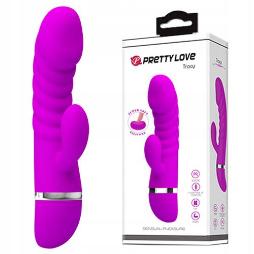 Tracy marki Pretty Love to piękny, wielofunkcyjny wibrator dla kobiet, który posiada 7 funkcji wibracji oraz zakrzywiony kształt stworzony po to, aby znaleźć i lepiej stymulować punkt G. Powierzchnia wibratora pokryta jest wypukłymi prążkami, które dodatkowo stymulują pochwę podczas penetracji.