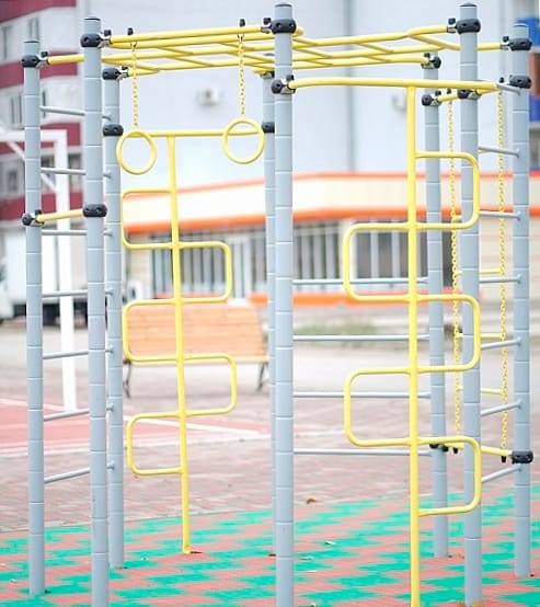 Zestaw street workout zaprojektowany do użytku na zewnątrz. W związku z tym, cała konstrukcja stworzona ze stali nierdzewnej ocynkowanej z proszkową ochroną antykorozyjną, dzięki temu jest wytrzymała i odporna na czynniki zewnętrzne. Szczególną uwagę zwracamy na bezpieczeństwo produktu. Przede wszystkim są to materiały bez toksycznych składników. Siłownia ogrodowa wyposażona w elementy bezpieczeństwa.