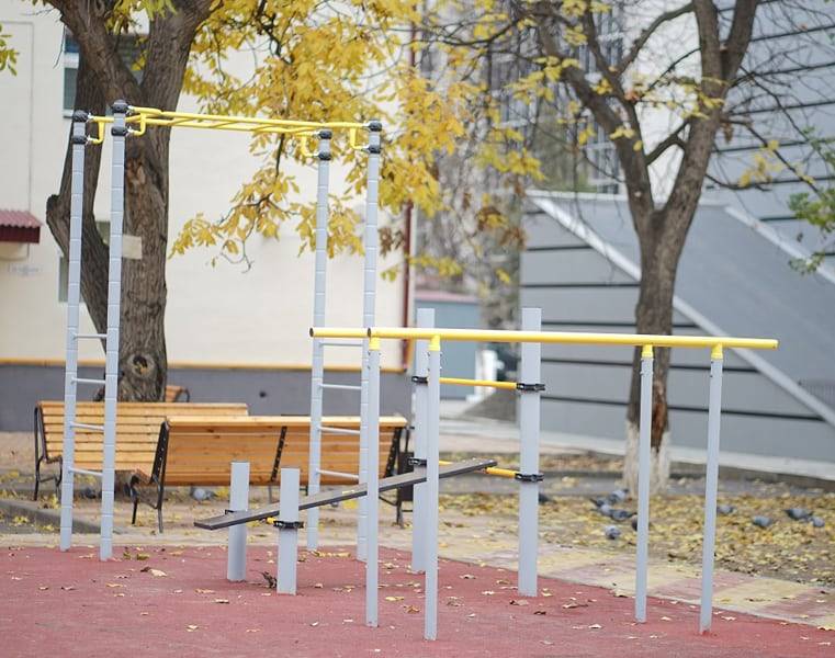 Zestaw street workout zaprojektowany do użytku na zewnątrz. Cała konstrukcja jest wytrzymała i odporna na czynniki zewnętrzne. Szczególną uwagę zwracamy na bezpieczeństwo produktu. Przede wszystkim są to materiały bez toksycznych składników. Siłownia ogrodowa wyposażona w elementy bezpieczeństwa.