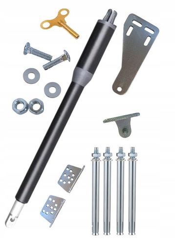 Wykonany z wysokiej jakości materiałów odpornych na korozję, siłownik zapewnia pełne bezpieczeństwo użytkowania bez ryzyka awarii. Kompletny zestaw montażowy – w tym płaskownik, kątowniki, mocowanie końcowe, sworzeń i klucz do rozblokowania – pozwala na szybką instalację, a intuicyjna konstrukcja eliminuje komplikacje.