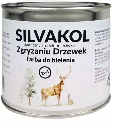 Silvakol to wysokiej jakości preparat odstraszający w formie białej farby, skutecznie chroniący sadzonki i drzewka drzew liściastych oraz iglastych przed zgryzaniem przez zające, sarny i inne zwierzęta. Dzięki swojej unikalnej formule zapewnia trwałą i efektywną ochronę przez okres do 6 miesięcy.