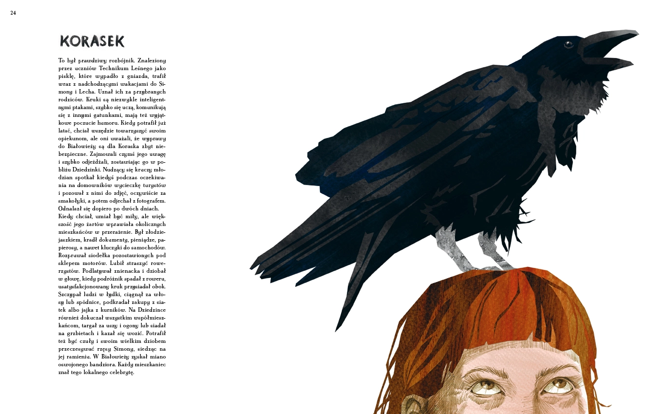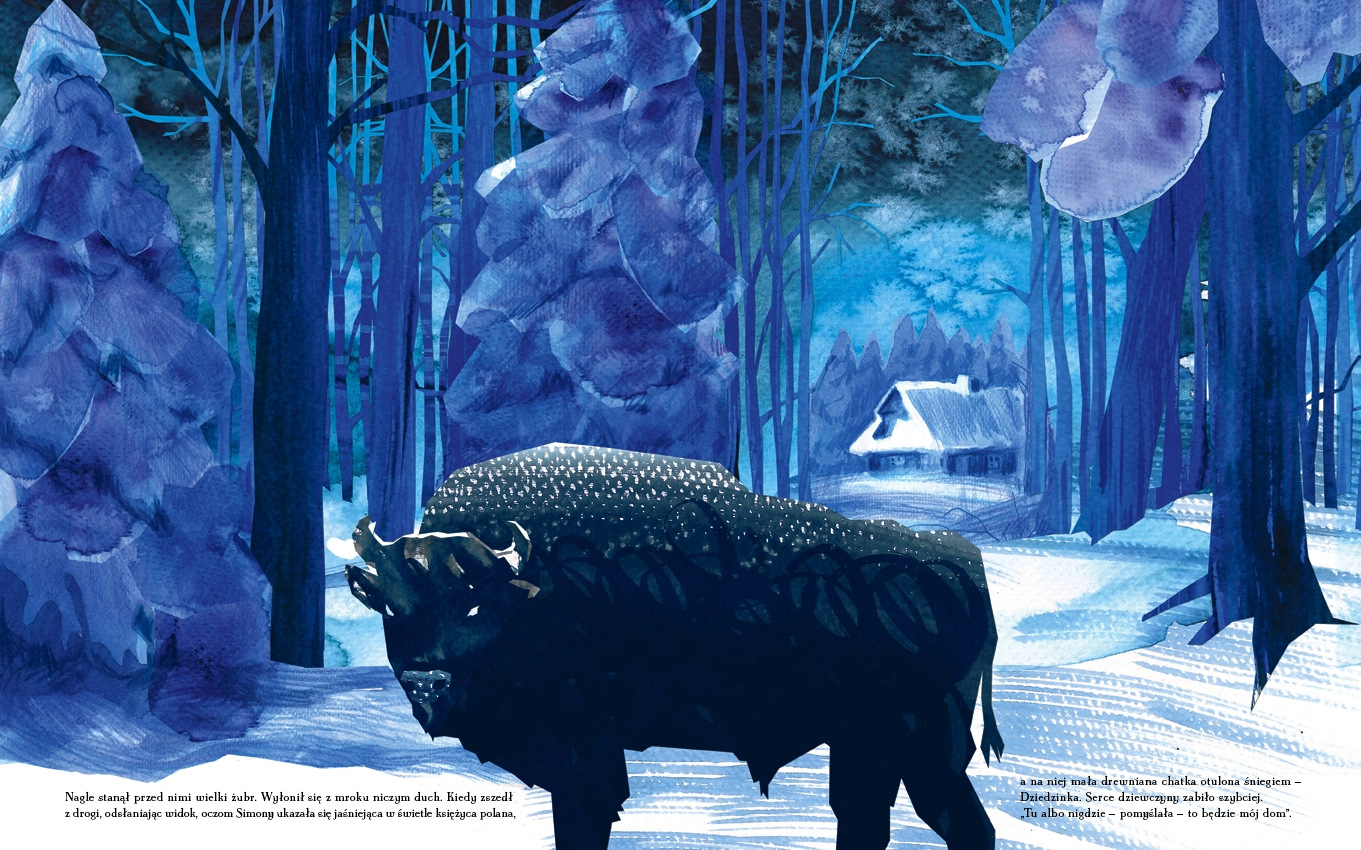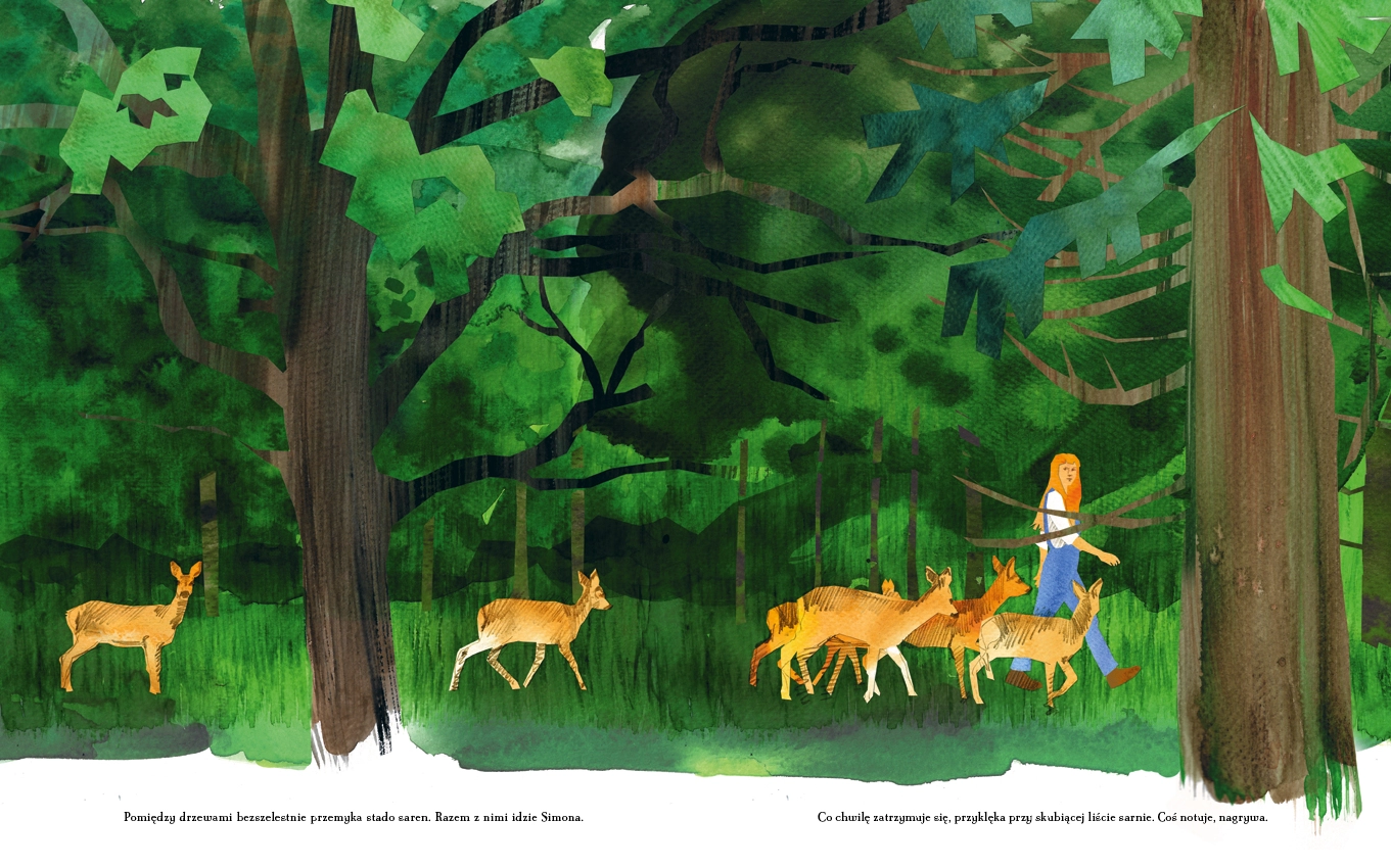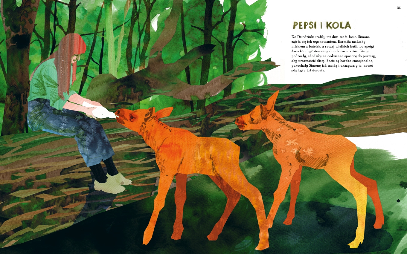 Bogato ilustrowana opowieść o Simonie Kossak (1943–2007), wybitnej biolożce, badaczce, profesor nauk leśnych, która dzięki swej pasji dokonała przełomu w dziedzinie zoo psychologii. Była niekwestionowaną królową Puszczy Białowieskiej. Całe życie poświęciła zwierzętom i działaniom dla ich ochrony oraz lepszego zrozumienia. Jak to się stało, że dziewczynka, która tak bardzo chciała zasłużyć na miłość rodziców i udowodnić, że potrafi „trzymać pędzel” i ma talent jak jej ojciec, dziadek i pradziadek – słynni polscy malarze, dwadzieścia lat później znalazła się w prawdziwym dzikim lesie? Wyrosła na odważną kobietę malującą słowem, autorkę wielu wspaniałych książek i bezkompromisową obrończynię przyrody. Zamieszkała w samym sercu puszczy, w drewnianej leśniczówce bez prądu i bieżącej wody, w otoczeniu zwierząt, które ją bezgranicznie kochały i nie musiała im niczego udowadniać. „Ci, którzy nauczą się współodczuwać z rośliną i zwierzęciem, potrafią zrozumieć innych i będą lepsi dla siebie, to znaczy nic nie uczynią wbrew swojej naturze”. – Simona Kossak Maria Strzelecka – doktor sztuk plastycznych, malarka, ilustratorka, autorka książek dla dzieci oraz filmów animowanych. Absolwentka, a obecnie wykładowczyni warszawskiej Akademii Sztuk Pięknych. Wielbicielka dalekiej Północy i całkiem bliskiego Beskidu Niskiego. Mama dwójki dzieci i opiekunka psa malamuta. Zdobywczyni wielu nagród literackich i graficznych, m.in.: Nagrody Literackiej m.st. Warszawy, Nagrody im. Ferdynanda Wspaniałego dla najlepszej książki dziecięcej oraz kilkukrotnie nagrody w konkursie Książka Roku Polskiej Sekcji IBBY. Jej poprzednie książki to: Beskid bez kitu, Beskid bez kitu. Zima, Hajda. Beskid bez kitu i Nikifor.