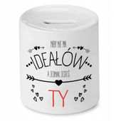Skarbonka Dla Dziewczyny Niby Nie Ma Ideałów z Nadrukiem ze Zdjęciem to nie tylko zwykły przedmiot - to prawdziwy klucz do spełnienia marzeń i realizacji pragnień Twojej ukochanej!