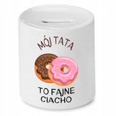 Skarbonka Dla Taty "Mój Tata To Fajne Ciacho" z Nadrukiem Ze Zdjęciem to nie tylko zwykły przedmiot, to wyjątkowy sposób na wyrażenie miłości i szacunku do najważniejszej osoby w Twoim życiu. Pozwól swojemu tatusiowi na odkrycie radości z oszczędzania, dzięki czemu każda moneta wrzucona do skarbonki stanie się krokiem w stronę spełnienia jego marzeń. Idealny prezent, który łączy w sobie praktyczność i emocje!