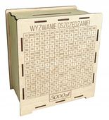 Ta wysokiej jakości skarbonka wykreślana z drewnianej sklejki o grubości 3 mm wyróżnia się nie tylko eleganckim i trwałym wykonaniem, ale także praktycznymi funkcjami. Z grawerowanym trackerem oszczędności w wybranej kwocie (od 1000 zł do 25 000 zł) i możliwością personalizacji tytułu, umożliwia systematyczne śledzenie postępów, czyniąc oszczędzanie angażującym wyzwaniem na co dzień.
