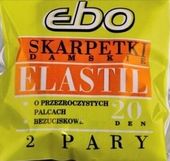 Skarpetki Ebo Elastil Worek ● wykonane z wysokiej jakości materiałów ● posiadają zaznaczoną część palcową ● bezuciskowy ściągacz ● sprzedaż całym opakowaniem 2 szt ● cena dotyczy 1 KPL