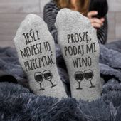 Każda para skarpetek została zaprojektowana z myślą o kobietach, które potrafią cieszyć się życiem. Wyjątkowy antypoślizgowy nadruk, który mówi "Jeśli możesz to przeczytać, proszę podaj mi wino", nadaje im niepowtarzalny charakter i sprawia, że są one doskonałym towarzyszem na wieczory z przyjaciółkami czy relaksujące wieczory w domu.