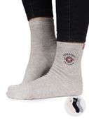 Dziecięce skarpety dostępne w praktycznym trzypaku. W chłopięcych kolorach, z motywem napisów.