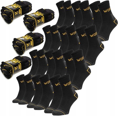 Pakiet 12 par w czarnym kolorze z subtelnym napisem WORK gwarantuje pełną gotowość na codzienne wyzwania. Ich wytrzymała konstrukcja odporna na ścieranie i rozciąganie pozwala na długotrwałe użytkowanie, nawet w trudnym otoczeniu, bez obaw o szybką utratę jakości.