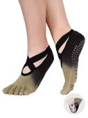 Skarpety stopki pięciopalczaste do jogi sprzedawane w praktycznym dwupaku. W kolorze zielonym i ecru, cieniowane. Skarpety są miłe w dotyku i elastyczne, dobrze przylegają do stopy.