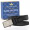 Pasek ma elegancki czarny kolor, idealny do każdego stroju - zarówno casualowego, jak i formalnego. Jego długość wynosząca 115 cm oraz szerokość 3 cm sprawiają, że pasuje do większości męskich sylwetek. Regulowana metalowa sprzączka w kolorze matowego srebra (o wymiarach 3,5 x 5,5 cm) pozwala na łatwe dopasowanie do indywidualnych potrzeb, eliminując konieczność używania klasycznych dziurek. To wyjątkowe rozwiązanie, które zwiększa komfort użytkowania.