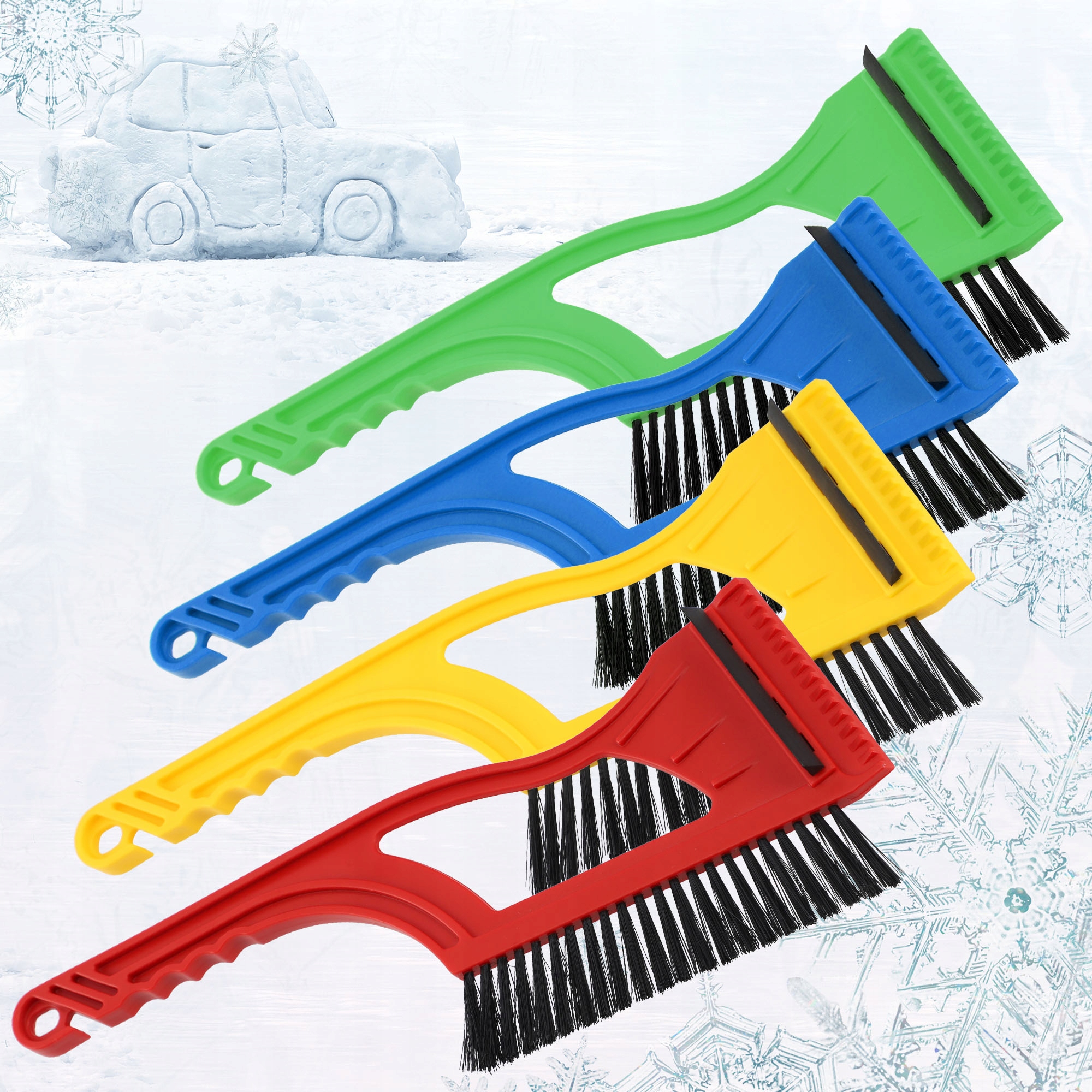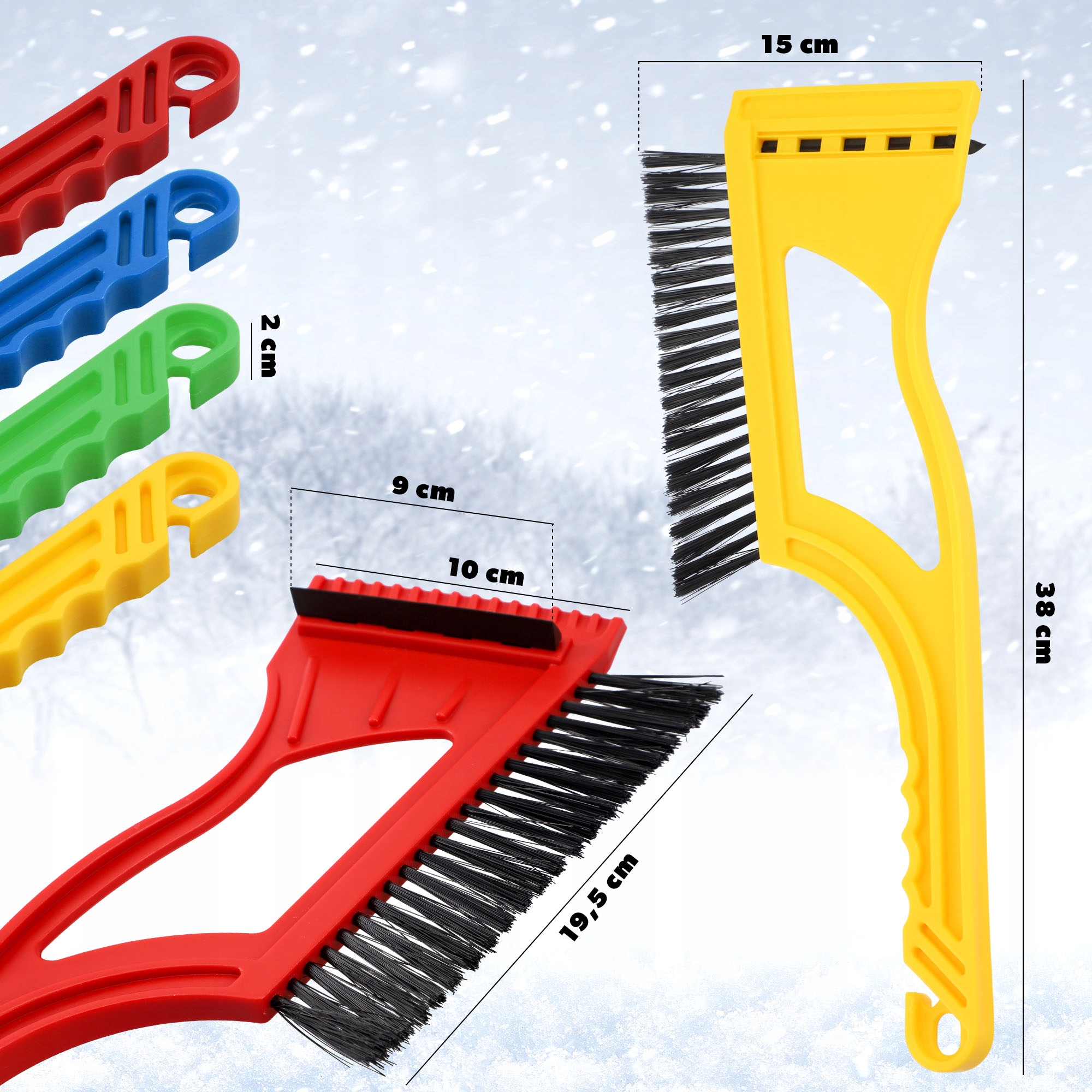 ŁATWA DO PRZECHOWANIA – na końcu rączki znajduje się otwór, który umożliwia wygodne zawieszenie na haczyku. Niewielkie rozmiary ułatwiają przechowywanie skrobaczki w samochodzie. Produkt jest wysyłany losowo w jednym z czterech kolorów: czerwonym, zielonym, niebieskim i żółtym.