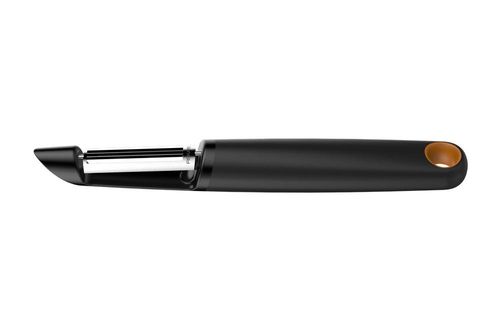 Ergonomiczna skrobaczka do warzyw i owoców z rękojeścią pokrytą powłoką SoftGrip TM . Końcówki można użyć do usuwania "oczek".