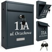 Skrzynka z indywidualnym nadrukiem adresu – ulicą, numerem domu i literą lokalu – dodaje unikalnego charakteru Twojemu wejściu. Dostępne wzory pozwalają na dostosowanie do estetyki domu lub firmy, tworząc schludny i profesjonalny wygląd, który wyróżnia się dbałością o detale i trwałością nadruku odpornego na blaknięcie.