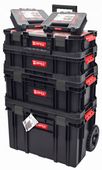 Zestaw gwarantuje wyjątkową wytrzymałość i zwrotność, dzięki metalowej osi i regulowanym przegrodom w każdej skrzyni. Niezależnie od tego, czy pracujesz w garażu, na budowie czy w warsztacie, te moduły tworzą stabilny system transportowy o wysokiej ładowności, umożliwiając łatwe przemieszczanie i dostęp do zawartości bez zbędnych komplikacji.