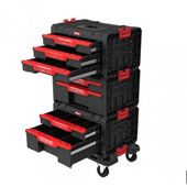 Ta modułowa szafa warsztatowa Qbrick System PRO Drawer w zestawie Z258117PG003 wyróżnia się przemyślaną konstrukcją i solidnymi komponentami, które zapewniają niezawodne przechowywanie narzędzi. Zestaw obejmuje platformę transportową QS PRO oraz trzy moduły szufladowe QS PRO Drawer Toolbox, oferując łącznie 7 szuflad – w tym 5 o głębokości powyżej 5 cm i 2 o głębokości powyżej 11 cm – co pozwala na precyzyjne segregowanie i szybki dostęp do każdego przedmiotu.