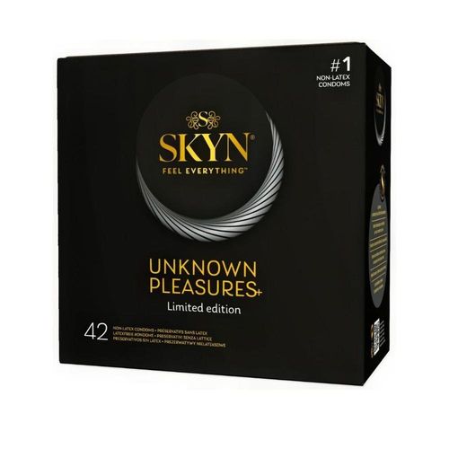 Unimil SKYN Unknown Pleasures to zestaw nielateksowych prezerwatyw. Eleganckie, ekonomiczne opakowanie zawiera 42 prezerwatywy w zaskakujących wariantach i o unikalnych właściwościach, które ożywią Twoje życie intymne. Do wyboru prezerwatywy, które rozbudzają pragnienia i zmieniają ochronę w źródło przyjemności. Dzięki szerokiemu wyborowi prezerwatywy przestają być nudnym obowiązkiem, stając się gadżetem erotycznym, który zapewnia zarówno bezpieczeństwo, jak i intensywne doznania.
