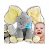 Słonik fascynuje dzieci swoimi ruchomymi uszami, które poruszają się w rytm muzyki, co wspiera rozwój percepcji wzrokowej i słuchowej. Interaktywna zabawa w "a-kuku" angażuje wszystkie zmysły dziecka, ucząc go reagowania na bodźce i rozwijając zdolności obserwacyjne oraz koncentrację.