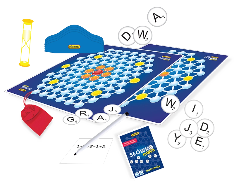 „Słówkomania” to gra, która zachęca do sprawnego posługiwania się językiem polskim. Wyrazy można układać we wszystkich możliwych kierunkach. Każde ułożone słowo jest punktowane. Poza samodzielnym układaniem można również wykorzystać słowa rywali, dokładając litery. Gra wymaga od zawodników myślenia, obserwacji, wyobraźni i sprytu. Wygrywa ten z graczy, który zdobędzie najwięcej punktów. W rozgrywce liczy się każde słowo! Układaj słowa we wszystkich kierunkach! Zdobywaj punkty na polach premiowanych! Dokładaj litery do słów przeciwników! Wymiary pudełka: 24.5 x 22.0 x 4.5 cm