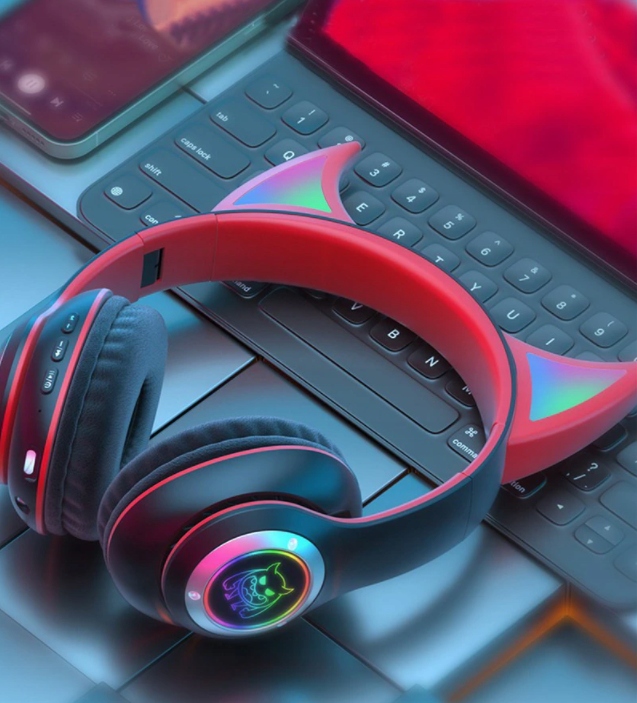 Zanurz się w świat muzyki z niepowtarzalnymi słuchawkami bezprzewodowymi CAT z podświetleniem LED RGB. Te wyjątkowe słuchawki nie tylko oferują zjawiskową jakość dźwięku, ale także przyciągają uwagę swoim uroczym designem z kocimi uszami, które zmieniają kolory. Idealne zarówno dla miłośników muzyki, jak i wielbicieli niebanalnych dodatków!