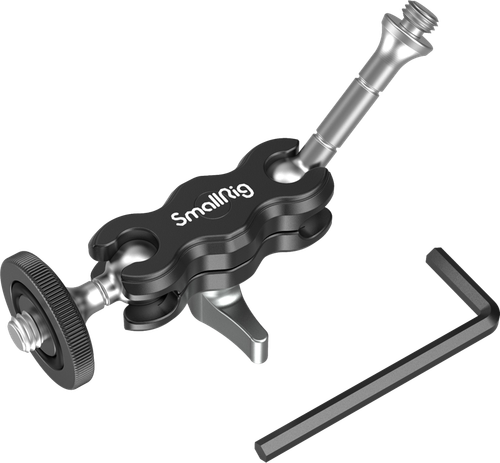 SmallRig Mini Magic Arm (SmallRig 3238) z uniwersalną głowicą kulową składa się z dwóch śrub kulowych 1/4"-20 i zacisku głowicy kulowej. Dzięki temu można go przymocować z góry lub dołu na jednym końcu klatki oraz do monitora na drugim. Ustawianie odpowiedniego kąta jest elastyczne i wygodne, a dzięki wbudowanym poduszkom produkt jest odporny na zarysowanie. Ramię dedykowane jest lekkim aparatom i kamerom. (maksymalnie obciążenie: 2,4 kg).