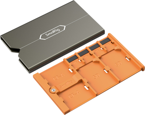 W etui można przechowywać jednocześnie dwie karty CFexpress typu A, dwie karty SD i cztery karty Micro SD, które można zastosować do aparatów, kamer akcji i dronów itd. Każda karta pamięci ma niezależną komorę, jak również każda przegroda jest odpowiednio podpisana, co służy do szybkiej identyfikacji. Etui jest kompaktowe i łatwe do przechowywania i używania. Zewnętrzna powłoka wykonana jest z wytrzymałego stopu aluminium, a wewnętrzna obudowa wykonana jest z materiału ABS + PC.