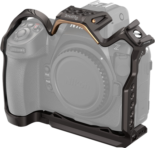 W klatce zastosowano trzypunktowy system blokowania: zabezpiecz swój Nikon Z 8 za pomocą dolnej śruby 1/4 "-20 i dwóch śrub M2,5 po obu stronach. Posiada również wbudowane podkładki, które zapobiegają zarysowaniu aparatu.