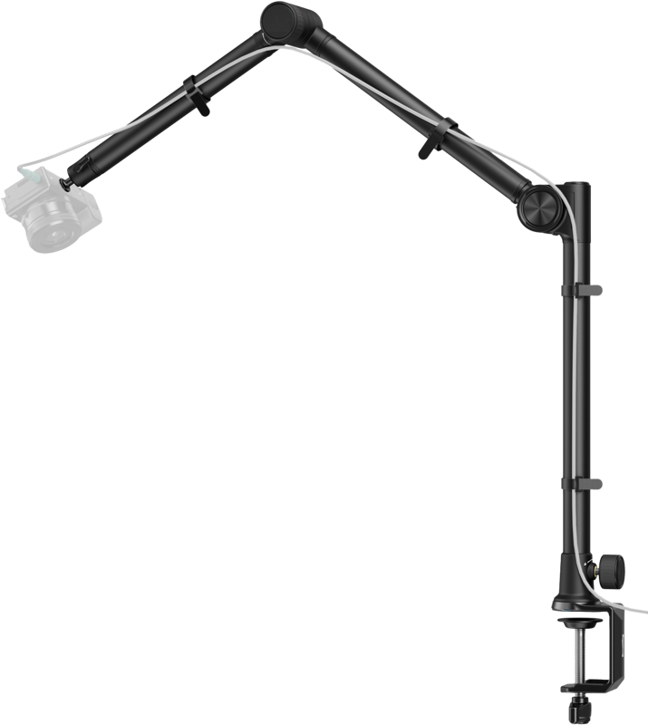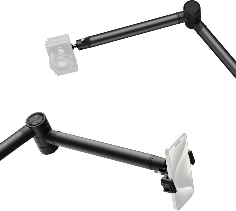 Składa się z 3-sekcyjnego uchwytu biurkowego, klipsa do telefonu, głowicy kulowej i opasek kablowych, głównie do łączenia urządzeń, takich jak telefony, aparaty bezlusterkowe i kamery internetowe do transmisji strumieniowej na żywo, wideokonferencji, fotografii z góry, filmów z rozpakowywania i nie tylko.