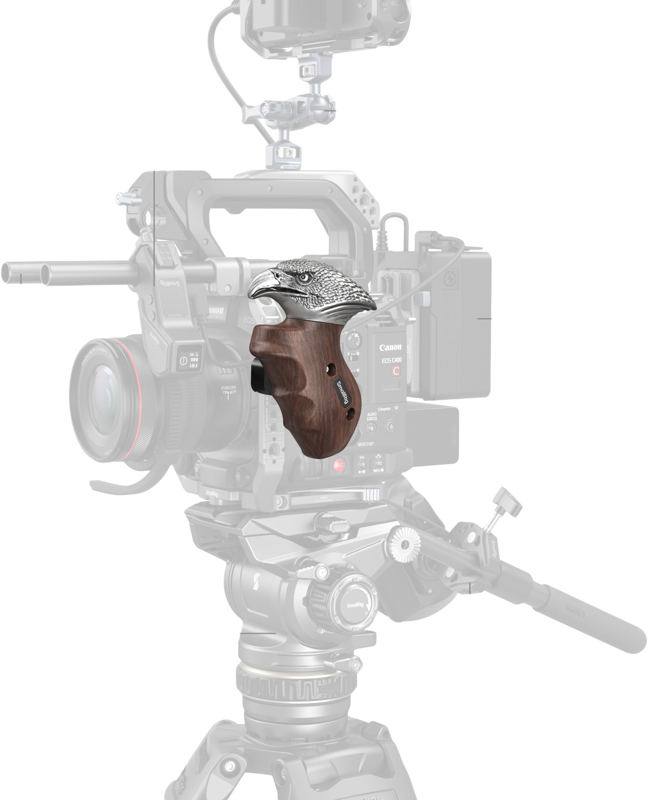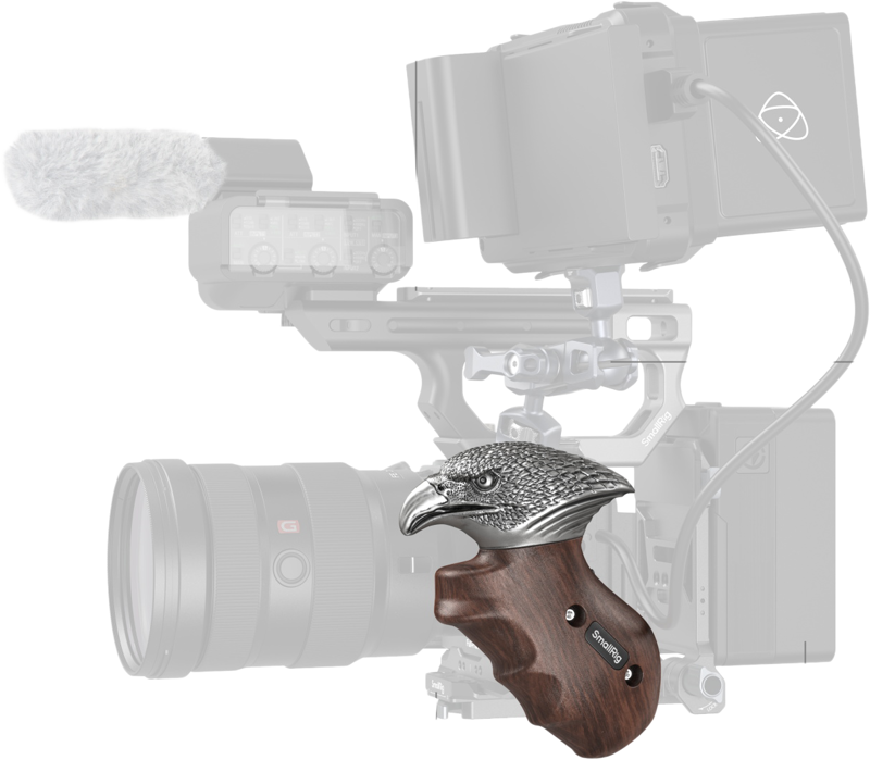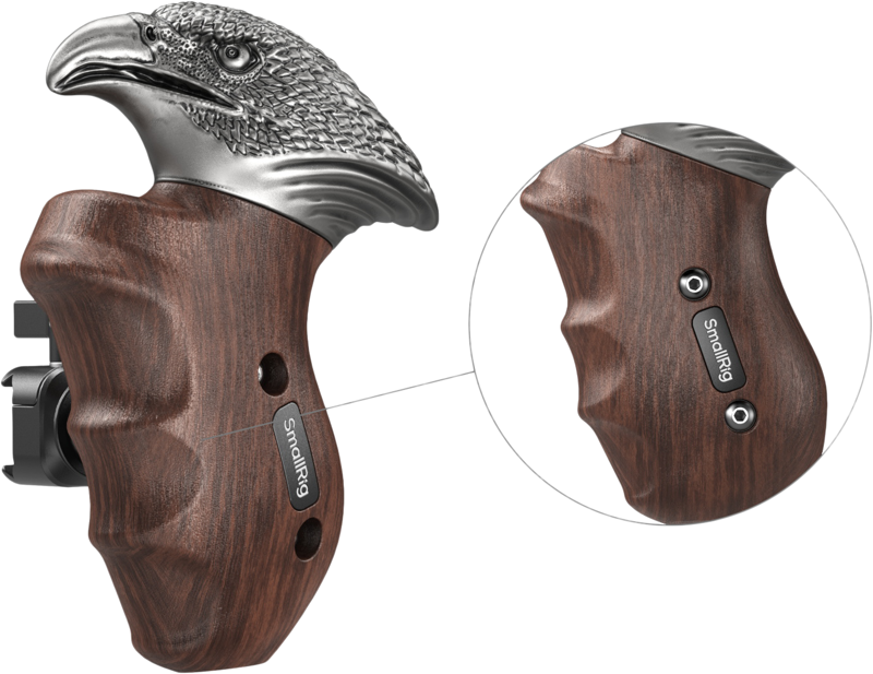 Poza praktycznym zastosowaniem, charakterystyczny design głowy orła służy również jako atrakcyjny element wystroju biurka.Rękojeść posiada funkcję bezstopniowego obrotu o 360° za jednym dotknięciem, co zapewnia elastyczną regulację kąta i precyzyjną kontrolę kamery. Dopasowany uchwyt zapewnia wyjątkowy komfort, nawet dla większych dłoni. Dzięki udźwigowi 15 kg uchwyt ten gwarantuje zarówno stabilność, jak i trwałość. Dołączona jest standardowa szyna NATO zapewniająca kompatybilność z różnymi klatkami.Kompatybilność: